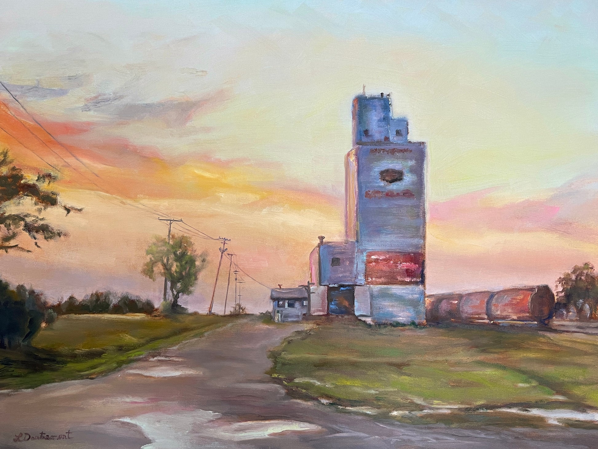 Grain elevators have been the heart of southern Saskatchewan and the Canadian prairies. They were the heartbeat of the movement of grain from farmers’ fields to grain and flour mills. Now as farms become larger more grain is being directly loaded into rail cars or taken by semi to inland terminals. Many small town grain elevators are being demolished and in time no longer to be seen. I loved how a rain shower had passed through this town just before sunset. The dampness reflected the vibrant setting suns rays casting a glow everywhere.