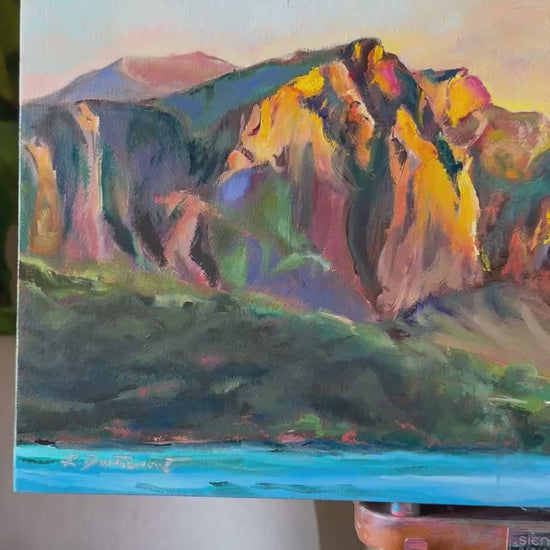 New from my easel is this 12” x 24” oil painting on gallery cradled board. The painting wraps onto the edges. It will be approximately the end of November 2025 for this painting to be dry enough to ship.