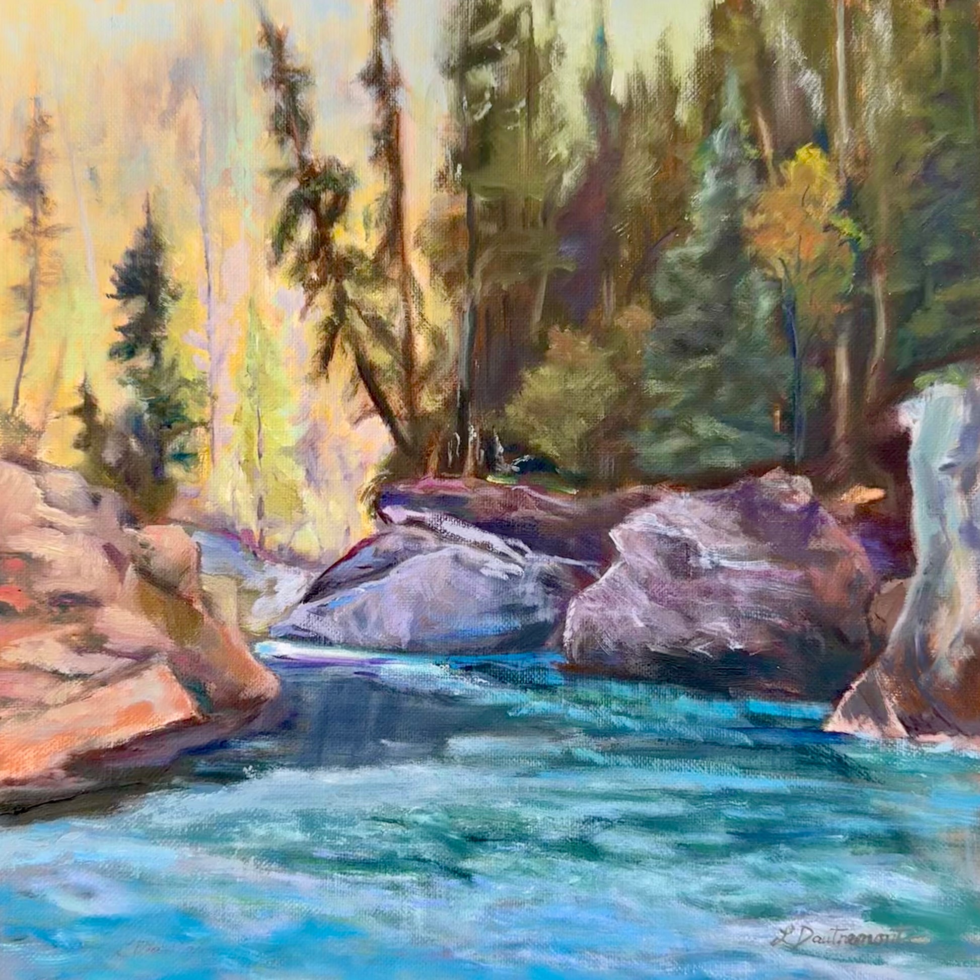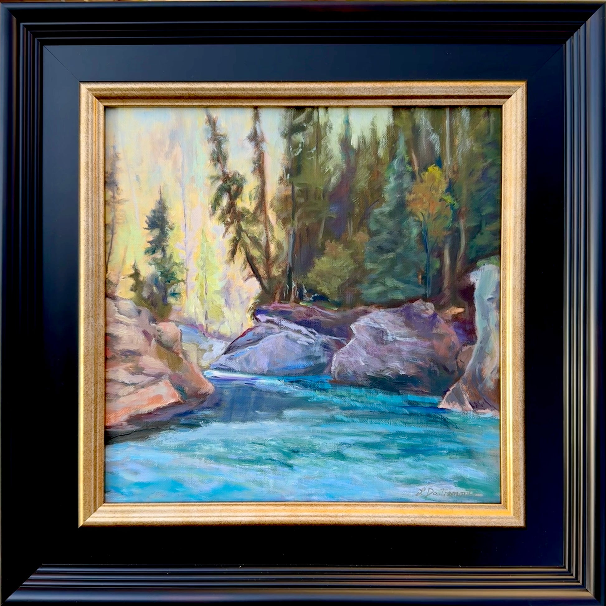 Oil painting, 12” x 12” on linen covered panel plus frame.